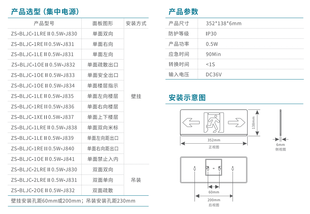 600大型款-雙面雙向消防應(yīng)急標(biāo)志燈 | ZS-BLJC-2LR0E Ⅲ 3W-J854 | 吊掛