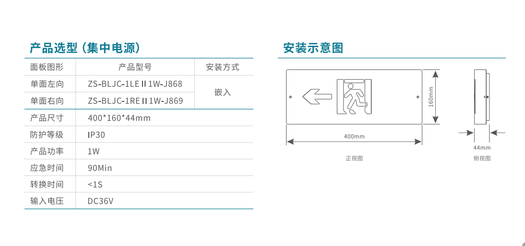 軌道交通-弧形款-單面右向應(yīng)急標(biāo)志燈 | ZS-BLJC-1REⅡ1W-J869 | 嵌入