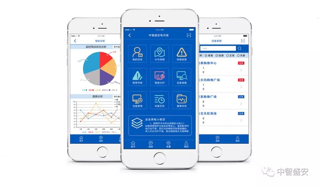 電可信智慧用電管理系統(tǒng)結(jié)合了互聯(lián)網(wǎng)+物聯(lián)網(wǎng)、云計算大數(shù)據(jù)分析等技術(shù),通過物聯(lián)網(wǎng)傳感終端,將供電側(cè)、用電側(cè)電氣安全數(shù)據(jù)實時傳送至云平臺,統(tǒng)一管理電氣安全隱患。一旦檢測到問題,系統(tǒng)會啟動隱患預(yù)警,發(fā)出告警,報警信息會通過APP、微信小程序,短信等多種方式將信息發(fā)送到相關(guān)用戶,讓用戶通過手機(jī)可隨時隨地查看當(dāng)前用電數(shù)據(jù)、區(qū)域用電安全隱患等相關(guān)數(shù)據(jù),并提醒相關(guān)人員及時排查消除火災(zāi)隱患,相關(guān)的專業(yè)技術(shù)人員也可遠(yuǎn)程提供專業(yè)的故障分析和指導(dǎo),幫助客戶進(jìn)行線路整改與優(yōu)化,實現(xiàn)迅速消除故障隱患的目的。