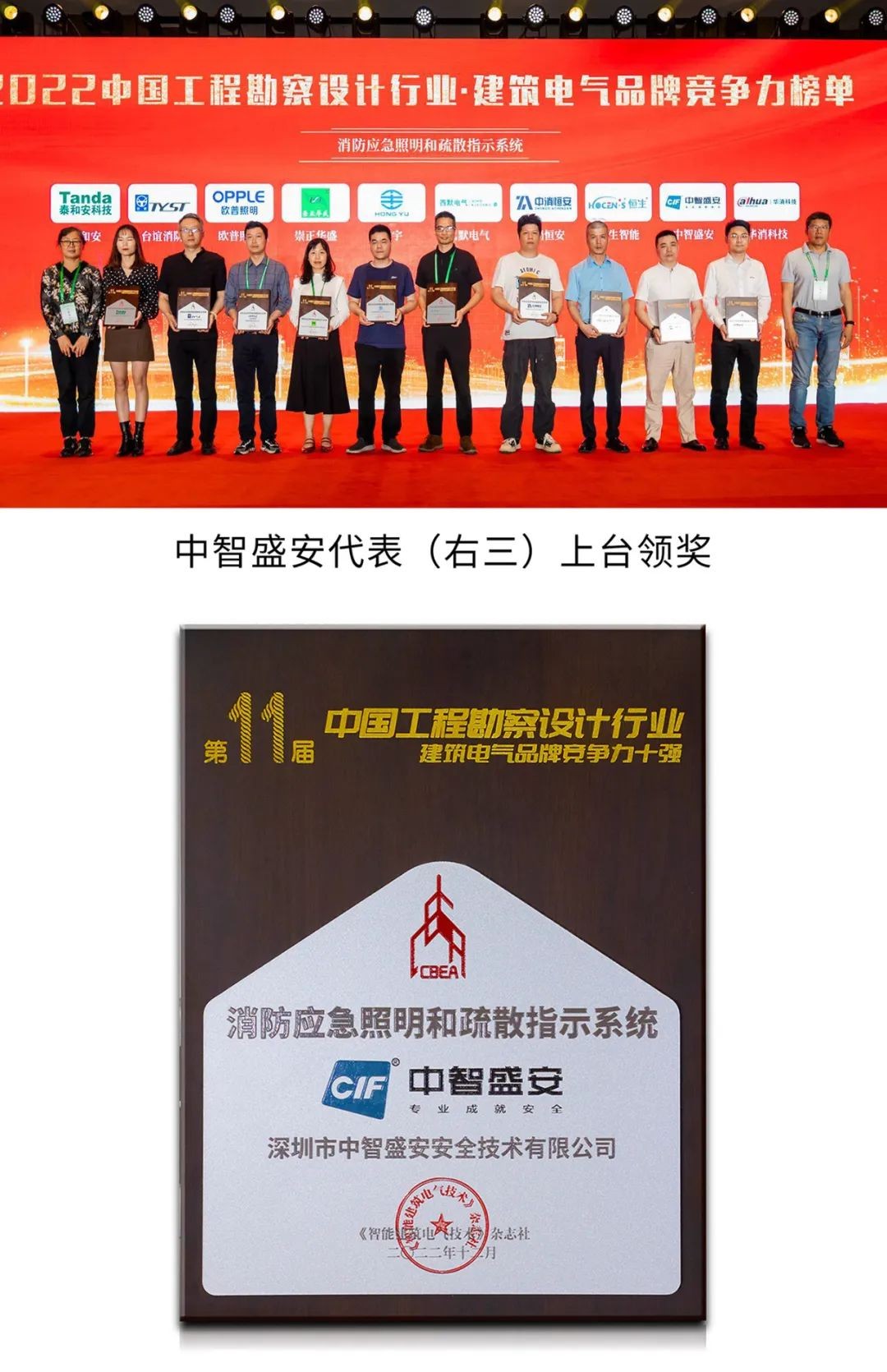 會上同期還舉行《2022中國工程勘察設(shè)計行業(yè)·建筑電氣品牌競爭力報告》發(fā)布儀式暨頒獎典禮。深圳市中智盛安安全技術(shù)有限公司(以下簡稱中智盛安)被評為消防應(yīng)急照明和疏散指示系統(tǒng)競爭力十強(qiáng)企業(yè)。