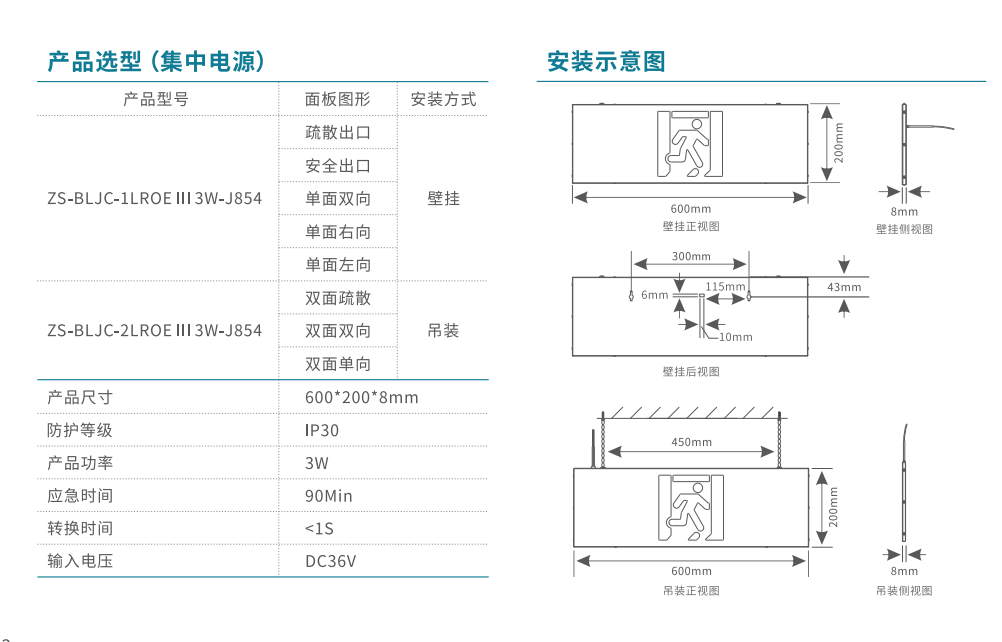 600大型款-雙面單向消防應(yīng)急標(biāo)志燈 | ZS-BLJC-2LR0E Ⅲ 3W-J854 | 吊掛